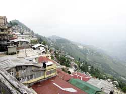 Darjeeling faces west, sprawling over the hillsides, with steep, winding roads lined with shops and market stalls. Fortunately there is no vehicular traffic on the upper portion so it is more quiet and the air isn't full of diesel.